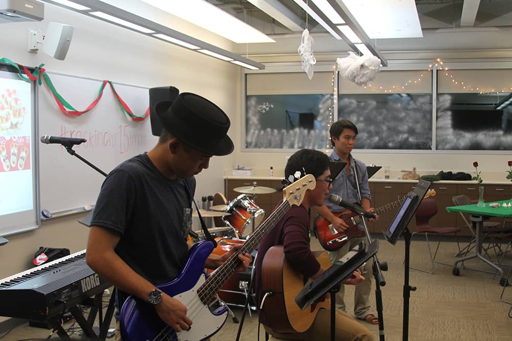 Held in festively decorated D201/202 rooms, the Class of 2015’s Rockin’ Christmas Social started off with students eating bentos while enjoying live music by student bands.